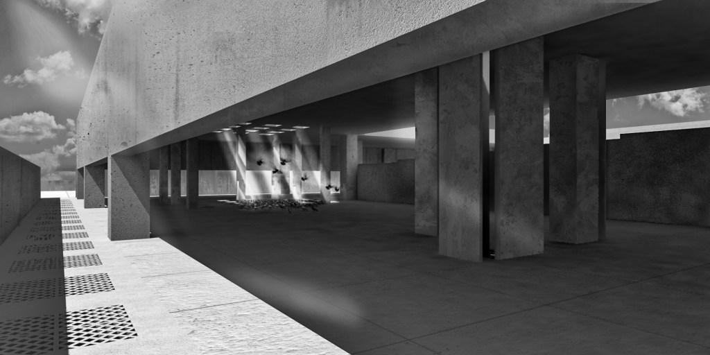 The design brings together the three essential characters and creates an apparatus that is not dogmatic on its possibilities but opens up different possibilities with through its spatial arrangement. The square bridge uses its form to house diverse events.