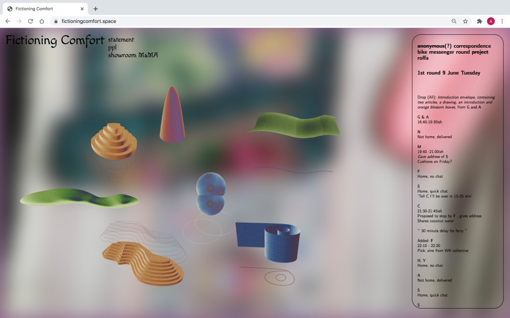 *While creating and producing this project, our homes have acted as sites for production, rest, and rethinking comfort. We have sat in our rooms, gradually sinking into the fiction of ‘being at home’ in the world, and attempting to extend beyond it.