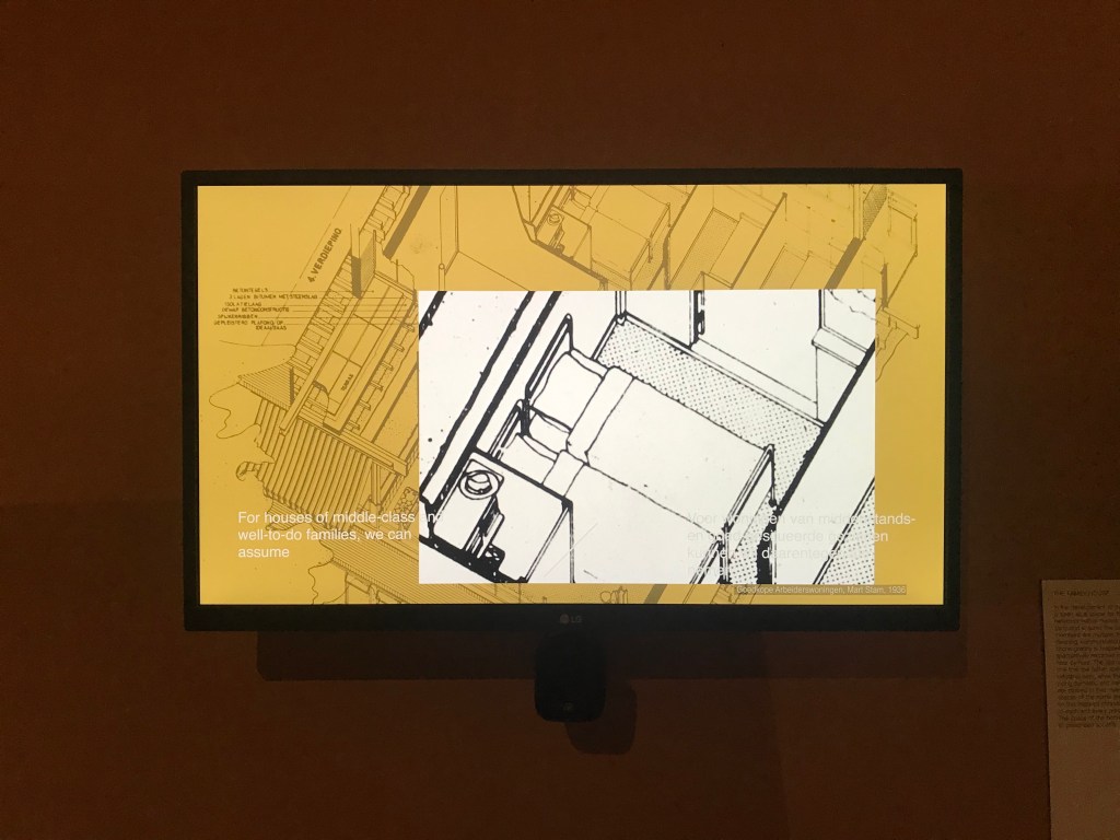The project resulted in designing a room in the exhibition that included a total of 5 main original video works, and a spatial installation, both using archival material, and looking at the well-known history of minimumwoning from a critical and new perspective. The work was made up of the following chapters: 1) Introduction, 2) Clinical / industrial House, 3) Family House, 4) First food, Second rent (Rent Strikes), 5) Universal / Colonial House.